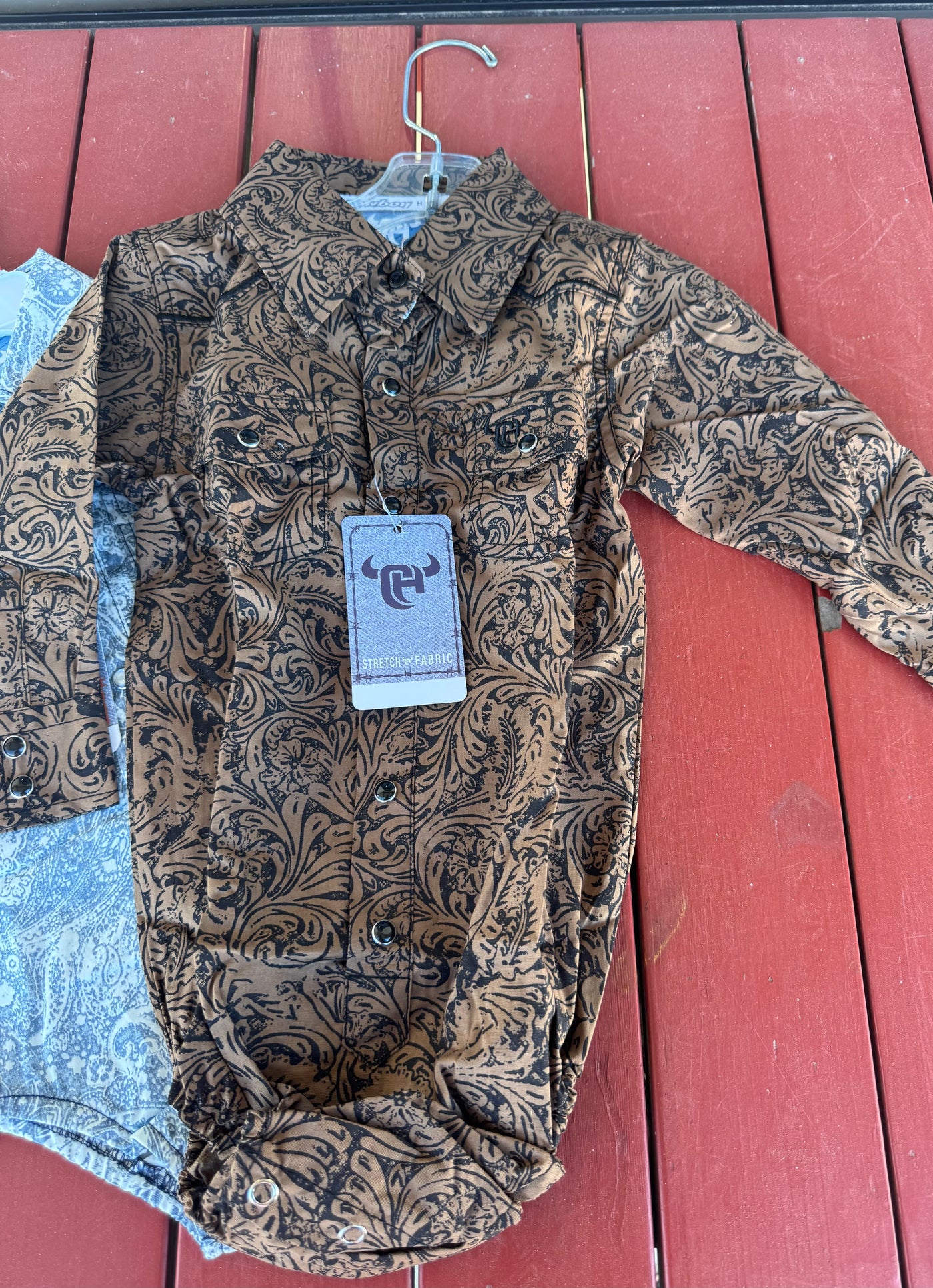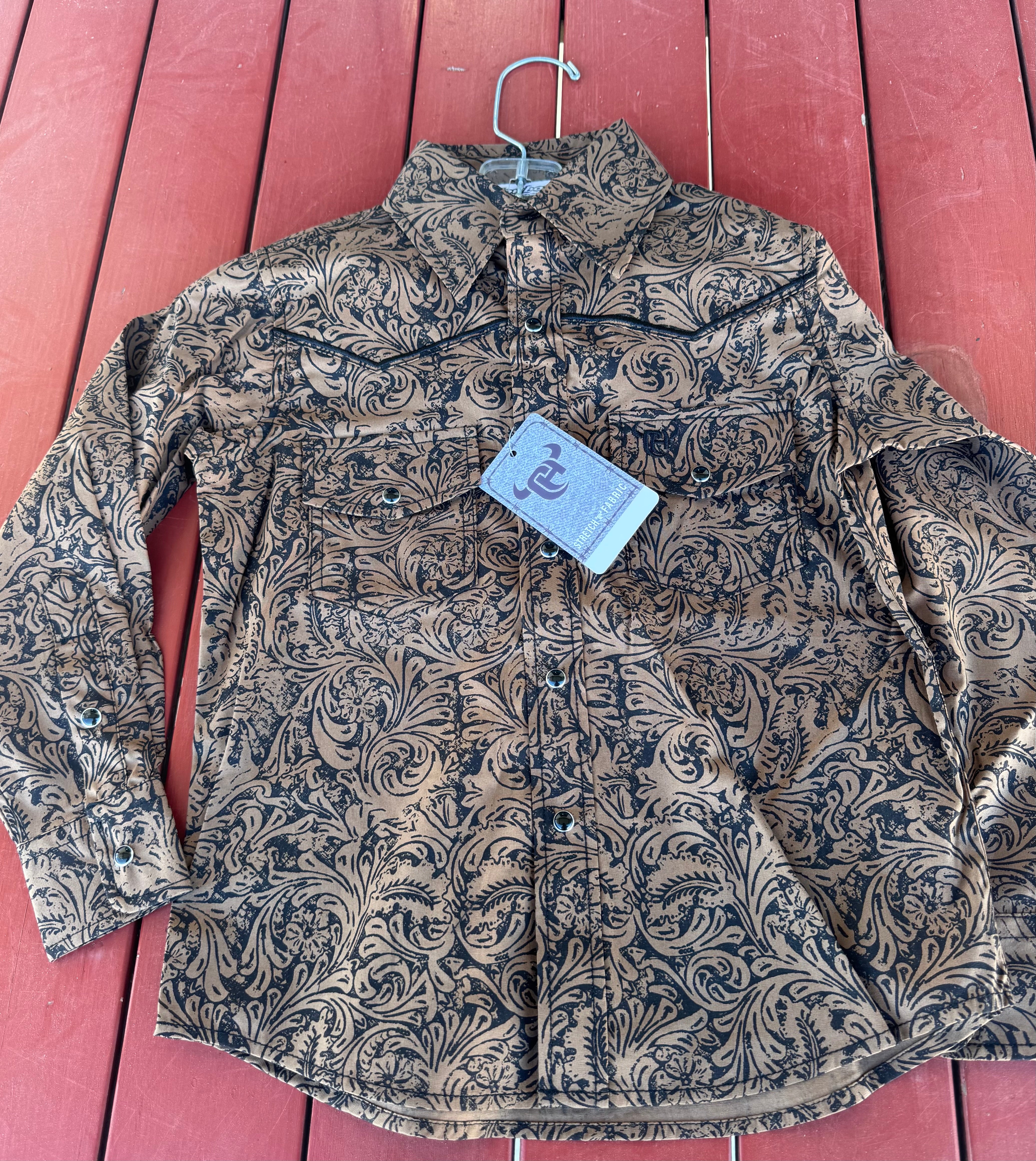 Brown/Black Tooled Leather Printed Pearl snap