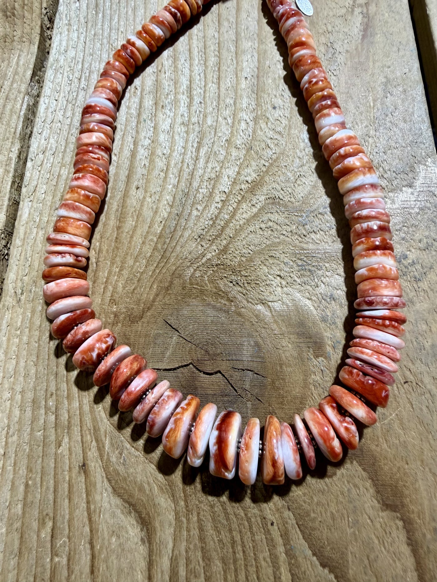 18" Sterling Silver and Spiny Oyster Handstrung Beaded Necklace